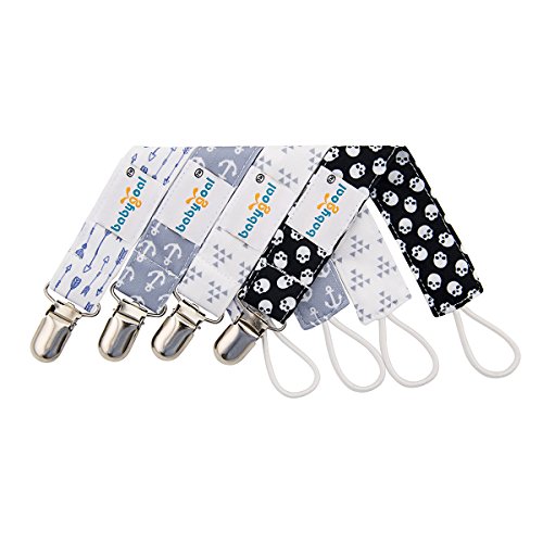 -. Binding : Baby Product -. Brand : babygoal -. Feature : Materials: polyester with waterproof PUL fabric,come with a plastic clip. Size: 17cmX2.5cm / Weight: 10g for each pieces, 30g for each pack.(3 pieces in each pack , No pacifier included.) / Keeps pacifier clean and close to baby. Secure clasp on your baby's clothes. Available in assorted colors, styles and patterns / A piece of elastic attached to the other end to loop through the PUL cloth facbric. A variety of ribbon used to hold it all together. / Each one is made with a white plastic clip that baby can't pull off to lose. Will not harm your child's clothes and safe for babies teeth if they chew on it. -. Label : Huapin -. Manufacturer : Huapin -. MPN : MP -. PartNumber : MP -. ProductGroup : Baby Product -. ProductTypeName : BABY_PRODUCT -. Publisher : Huapin -. Studio : Huapin -. Title : Babygoal Set of 3 metal pacifier clips Fits All Pacifier Styles For Girls And Boys