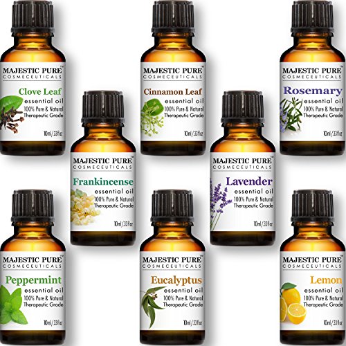 -. Title : Majestic Pure Aromatherapy Essential Oils Set of Top 8, 10 ml - Pack of 8 Includes Lavender, Frankincense, Peppermint, Eucalyptus, Lemon, Clove Leaf, Cinnamon Leaf & Rosemary Oils