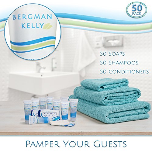 BERGMAN KELLY Soap Bars, Shampoo and Conditioner 3-Piece Travel Amenities Hotel Toiletries In Bulk Guest Size Bottles and Bars (Hotel Size 1 Oz, 50 Pack)