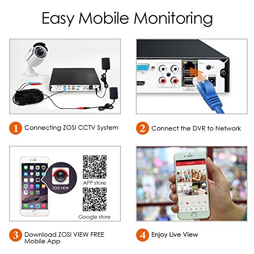 (1). QR code scan via mobile device using our free ZOSI View app (available on iOS/Android).Live view and playback on your smartphone.