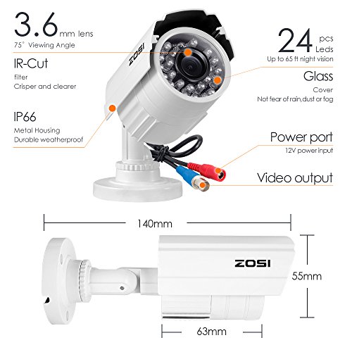 (2). 720P AHD Video - Get a sharp and crisp image day or night with the Weatherproof camera's automatic IR-cut filter. Up to 65ft night vision.