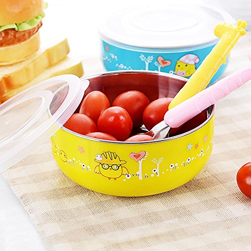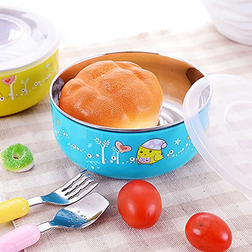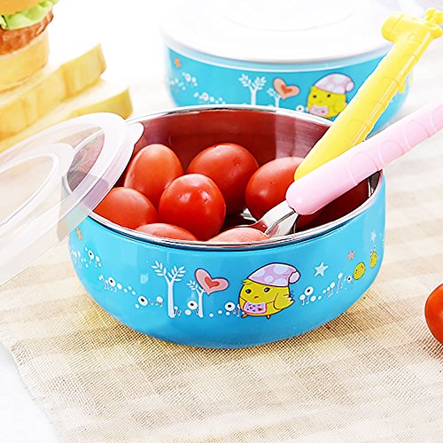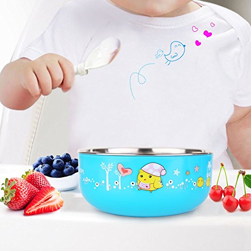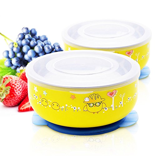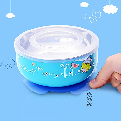-. Feature : Genuine BABY MATE Baby Safety Product. TRADEMARK filed in U.S.A. In Business Since 1995. / Enjoy Safer, Cleaner and Easier Baby Feeding Everyday - Set Includes 2 suction bowls in the same size (12oz/350ml); Crafted of premium stainless steel, food grade PP and silicone - free of BPA, lead, PVC, melamine and toxic chemicals. Stainless steel surface won't absorb odors or stains, no chemicals will leach into food; the smooth edge of the bowl supports kids' mouths. Double layer construction for anti-scald; spill-proof suction bases for less messes - support tiny dinners¡¯ self-feeding. / Double Body Construction Minimizes Messes - Durable stainless steel insert with a PP outer shell - keeps food at the approP.R.Iate temperature longer; protects little hands - insulation against hot or cold contents. Detachable design for fast & easy cleaning - wash, rinse and dry two parts individually, no humidity left - avoid bacteria or mold growth; An ice pack (not included) in the interlayer keeps food cool longer in hot days. ONE double layer bowl can be divided into TWO bowls if needed. / Baby Mealtime Will Be a Breeze - Each bowl comes with a removable suction base - sticks firmly on tables or high chairs - reduces spills and tips - helps get more food in their tummy; less on the floor. Parents can remove it easily with quick-release tabs on each suction base, but toddlers can't! Bowls won¡¯t turn into flying saucers - make after-dinner cleanup a breeze. A lid keeps food fresh, easy transport and storage; Easy Stack for clutter-free storage; Easy cleaning in top rack dishwasher. / Foster Independent Feeding - The set becomes useful the moment your kid learns to self feed; Features cute cartoon characters in vibrant colors - enhance kids¡¯ diet fun and foster interest in self-feeding; Curved shape & high sides help kids scoop up food easily - ease the frustrations of self-feeding; Two individual bowls will work for any hungry kids - perfect for cereal, soup, pasta and snacks; More suction equals less slips and slides - toddlers feel more in control in independent feeding.