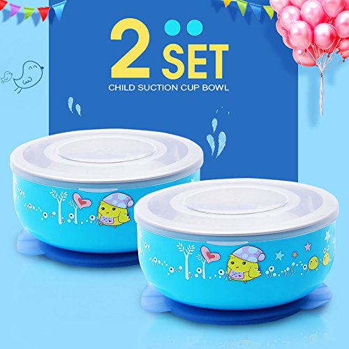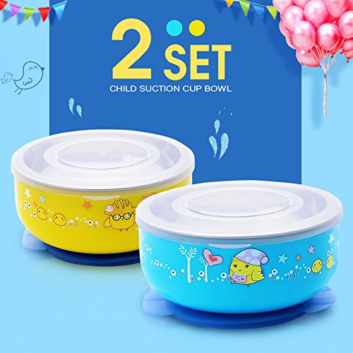 -. Title : Baby Mate 2 PCS Detachable Double Layer Stay Put Suction Bowls with Lids (12oz/350ml) - Stainless Steel Feeding Set for Kids - Anti-Scald Suction Bowls for Toddlers - Baby Shower Gifts - Baby utensils