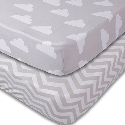 -. Title : Crib Sheets, 2 Pack Fitted Soft Jersey Cotton Sheet, Bedding with Unisex Clouds and Chevron Custom Design, Fits Standard Mattress for Babies and Toddlers