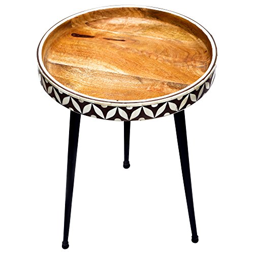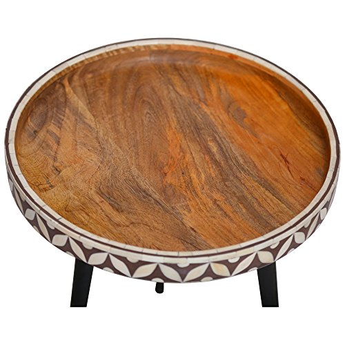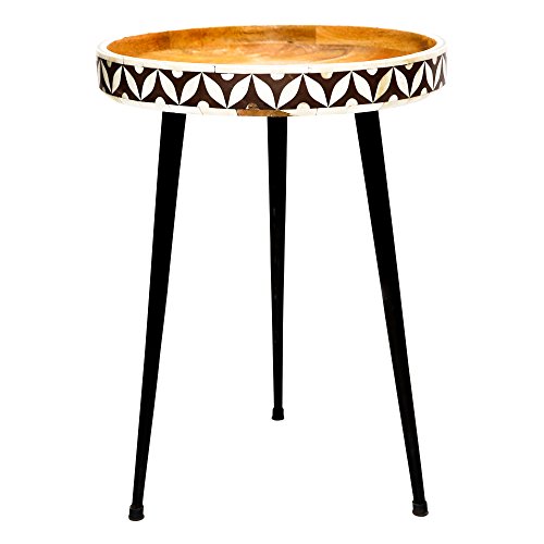 Ren-Wil Inled Accent Table, Small, Natural Wood/Antique Black Metal