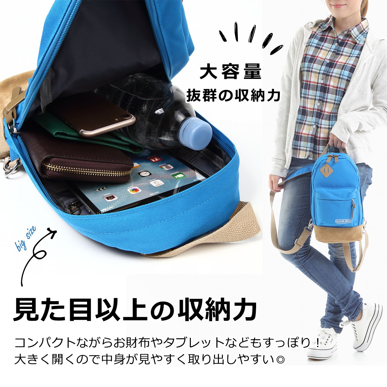 There are also pockets inside and outside so you can put small items.