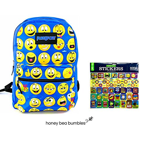 Product Description Durable cute backpack for kids or adults. Perfect to use for traveling, hiking, swimming, sleepovers or back to school. School and Activities supplies include: Jumbo pack of 800 count emoji stickers (72 foil stickers and 728 Mini Stickers) Honey Bea Bumbles - Bundles of Quality Products. 0