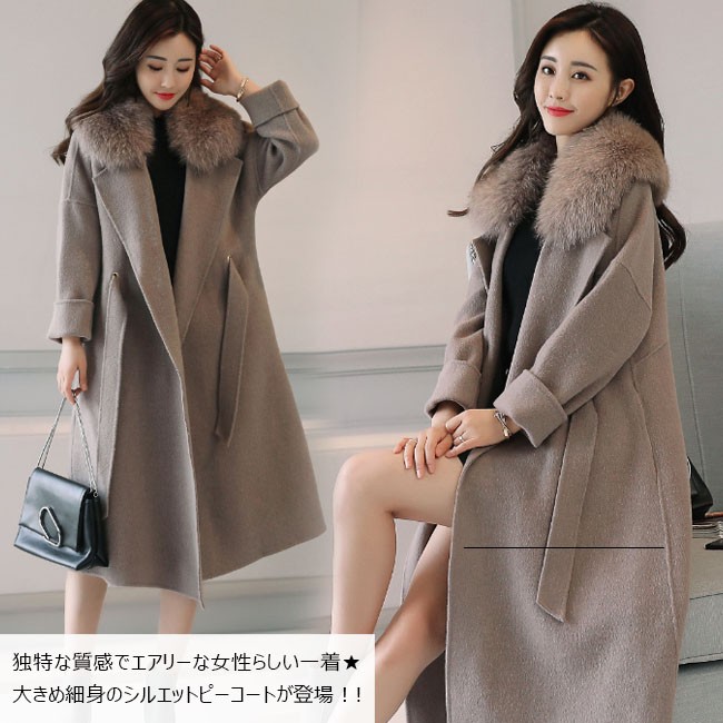 | 商品名 | ピーコート ダッフルコート 秋冬コート 秋冬アウター レディース ラシャアウター ロング丈 無地 ウェストベルト ふわふわファー 折り襟 カジュアル 2017秋冬新作 |