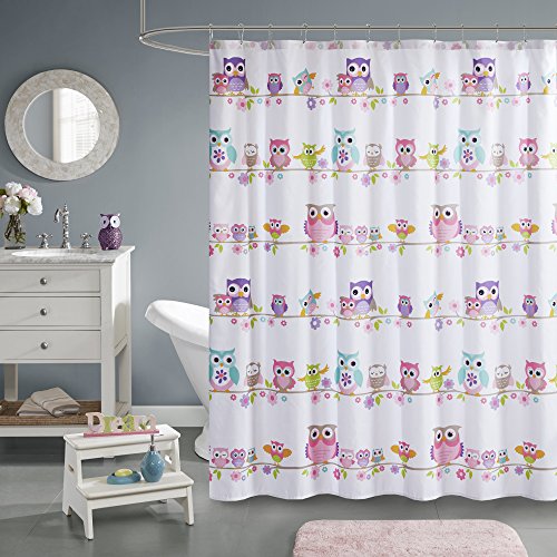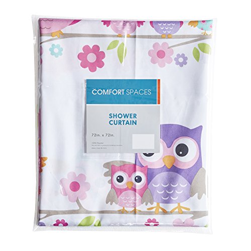 Comfort Spaces - Howdy Hoot Shower Curtain - Pink and White - Printed Owl Pattern- 72x72 inches