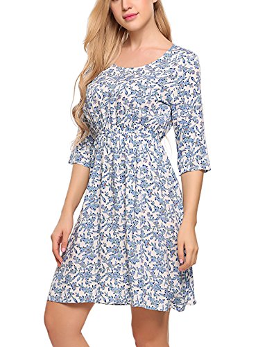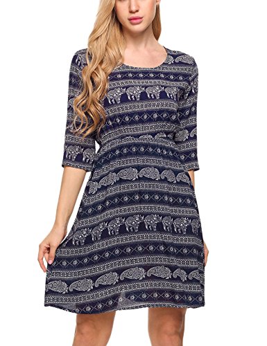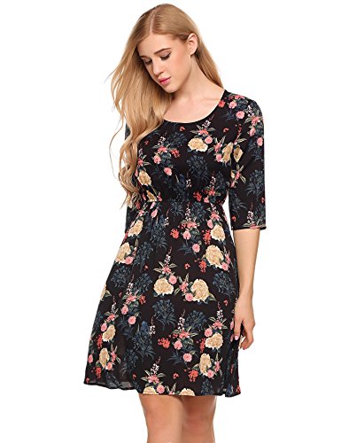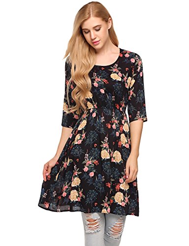 Style:Floral Print Top,Scoop neck, Summer Casual, Above Knees Tunic Dress