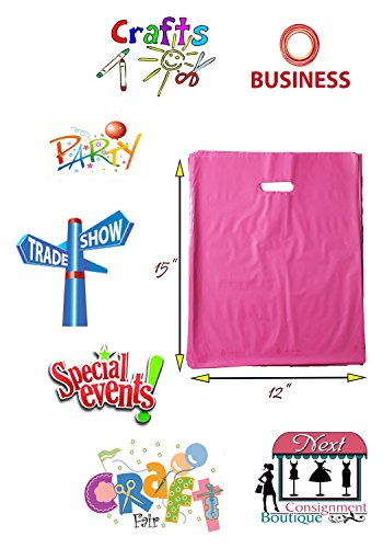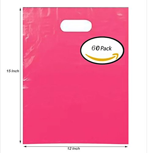 60pcs Durable Pink Merchandise bags 12X15 Die Cut Handle-Glossy finish-Anti-Strech-100% Recyclable. For Retail store, Birthday Party Bags favors, Handouts and more by Best Choice (Pink 60)