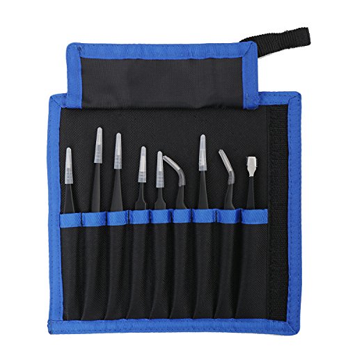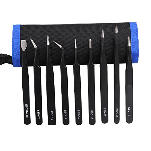 EASY TO CARRY - The rolling package including 9pcs professional ESD anti-static stainless steel tweezers. Every stainless steel tweezers hsuitable plastic protective. Lightweightas a , compact, easy to carry.