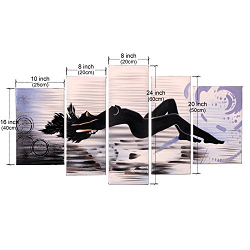 100% hand-painted oil painting artwork are wrapped and stretched with wooden frame, hooks are mounted on the back of wooden bar on each panel for easy hanging out of box.