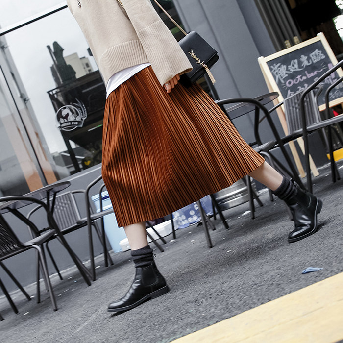 而且大裙摆丝毫不挑人,到膝盖以下的长度,适合秋冬