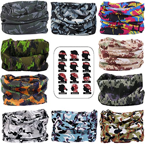 MAKLULU 10pc Seamless Bandanna Tube Headwear Scarf Wrap,12-in-1 Outdoor Sport Headband with UV Resistance
