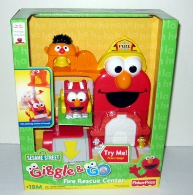 -. Binding : Toy -. Brand : Fisher-Price -. EAN : 0027084480504 -. Feature : Elmo Rescue Center - Place the Elmo fire engine on the platform and pull it up the fire pole then release the platform and Elmo will spiral down the pole / When Elmo reaches the bottom of the pole, he will roll off the platform, on to the ramp and over a switch on the ramp which will activate phrases and sound effects as he rolls down / Roll the Elmo fire engine through the door and a switch will activate phrases and sound effects / Features a Bert and Ernie Bell Tower / Fun for all children -. IsAdultProduct : 0 -. Label : Fisher-Price -. Manufacturer : Fisher-Price -. Model : L2574 -. MPN : L2574 -. PackageQuantity : 1 -. PartNumber : L2574 -. ProductGroup : Toy -. ProductTypeName : TOYS_AND_GAMES -. Publisher : Fisher-Price -. ReleaseDate : 2008-02-07 -. Studio : Fisher-Price -. Title : Giggle' N Go Fire Rescue Center -. UPC : 027084480504 -. Warranty : N