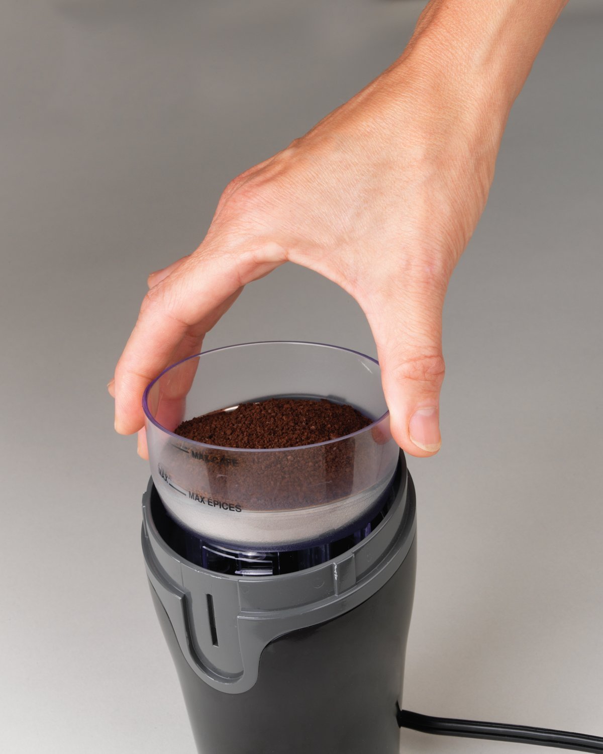 - Grinds coffee and spices