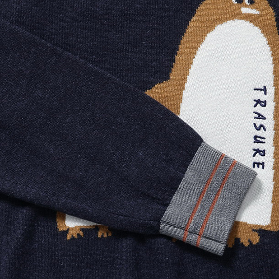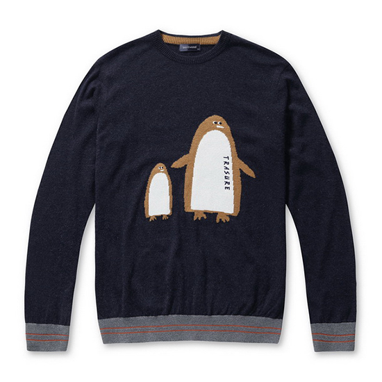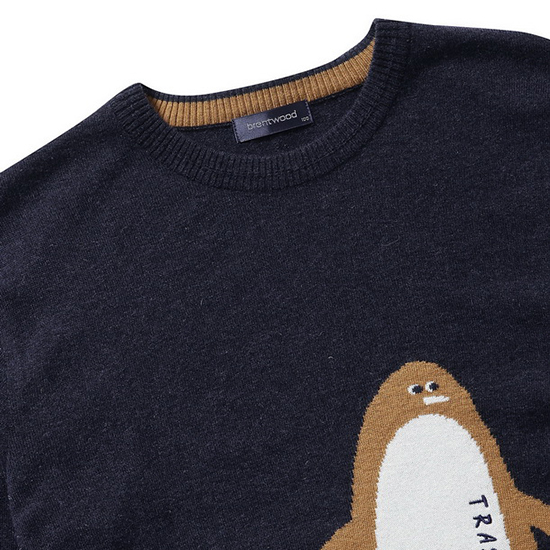 - 가슴판 펭귄 디테일로 포인트를 준 남성 니트.