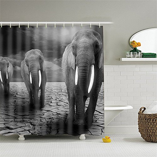 Black and White Elephant Shower Curtains for Bathroom - 3D Digital Printed Mildew Proof Anti Bacterial Waterproof Polyester Bath Curtains HYC18-US (#4)