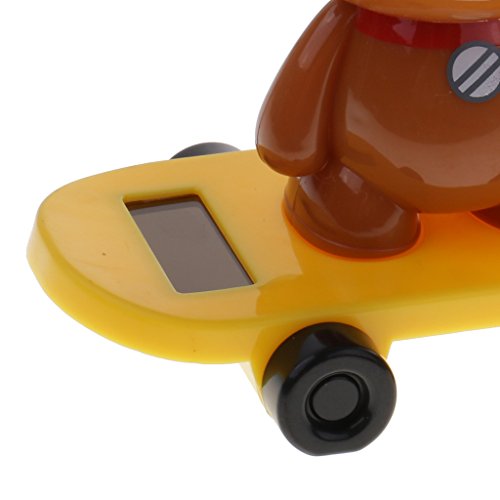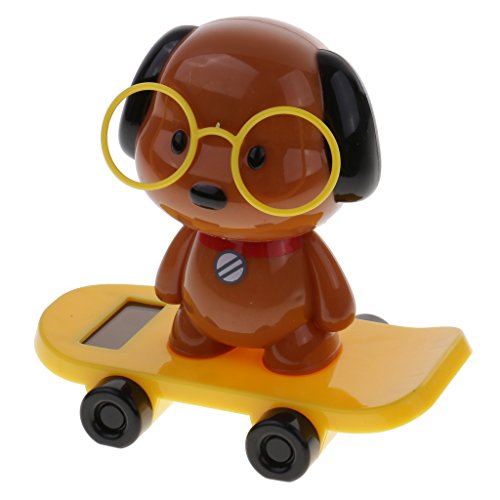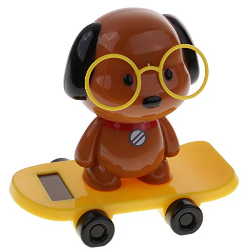 Description: - Powered by the sun or any light source from a panel on its base - This cute dog wearing glasses doll on skateboard can keep shaking heads, an affordable ornament for your desk, table, balcony or front of car, and etc - It will give you a good mood when you look at it - Perfect gifts for adults and children - Material: Plastic - Color: Yellow Size Chart: W x H: Approx 10 x 9cm/3.94 x 3.54inch