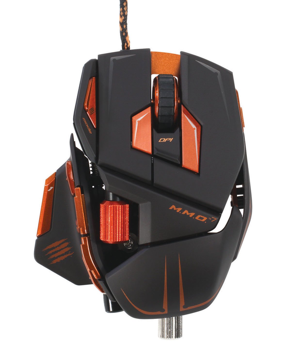 Arranged in area · Aluminum chassis, which is difficult to color, also unified to orange · When the action lock button is activated, the color of the main button changes from orange to blue, green depending on the condition MC - MMO 7K is a multi -