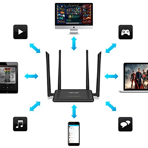 ❖4 External Antennas: Four Rotatable external 5dBi antennas greatly expand WiFi throughout your home, enjoying music, gaming, video, chatting with ease under 2.4GHz wireless network ;