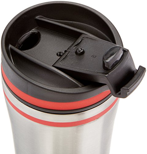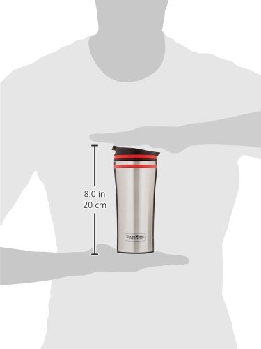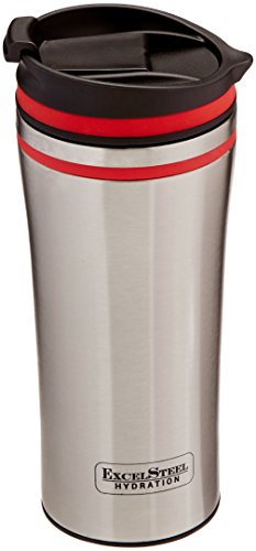 ExcelSteel Double Wall Stainless Steel Coffee Tumbler with Silicone Ring, Red