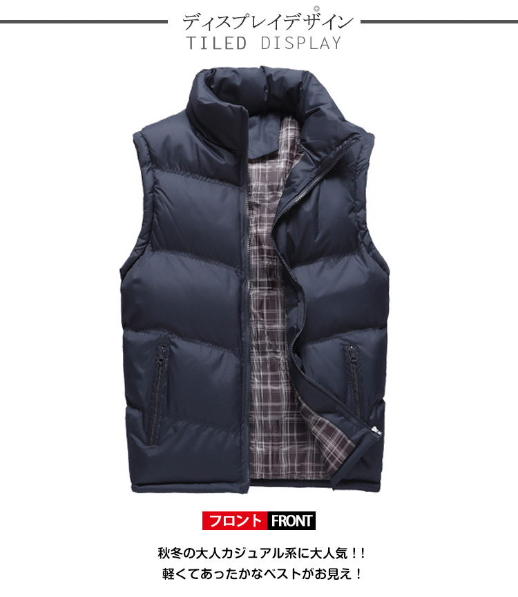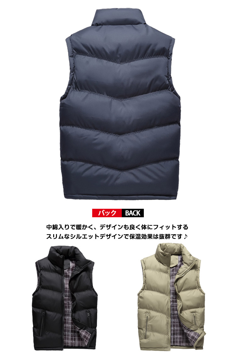| 秋冬の大人カジュアル系に大人気!! 軽くてあったかなベストがお見え!中綿入りで暖かく、デザインも良く体にフィットするスリムなシルエットデザインで保温効果は抜群です♪定番スキニーやカーゴパンツからサルエルパンツなどのデザイン物までボトムスを選ばずに着用できる★インナーを変えることでさらにシーズン長く愛用していただけるのもベストの良いところ♪今期トレンドの中綿ベストジャケットをこの機会にぜひチェックしてください。 | |