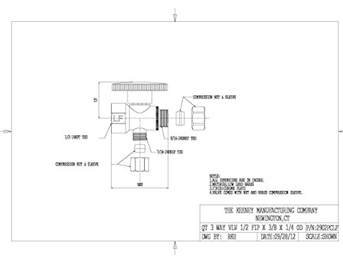 Keeney 2902PCLF 1/2-Inch FIP by 3/8-Inch by 1/4-Inch Lead Free Quarter Turn 3 Way Valve, Chrome