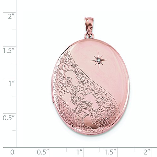 ICECARATS DESIGNER JEWELRY 925 STERLING SILVER ROSE GOLD PLATED DIAMOND FOOTPRINTS 34MM OVAL PHOTO PENDANT CHARM LOCKET CHAIN NECKLACE THAT HOLDS PICTURES