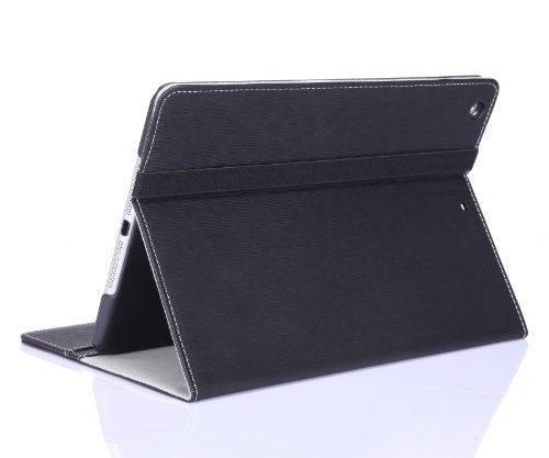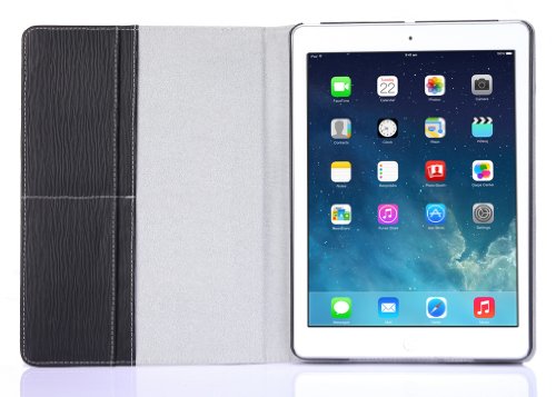 - Feature : Made of premium synthetic leather; soft interior material provides a good protection of Apple iPad Air / Premium hard-shell case having precise cutouts for your device; Full access to all ports and buttons / Adjustable stand with multi-viewing angles; Perfect for video-chatting and movie-watching / High-grade elastic strap holds the lid open and closed / Support Auto Wake/Sleep Function; Slim fit design; Business Card Holder; Multiple Color Options