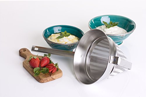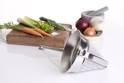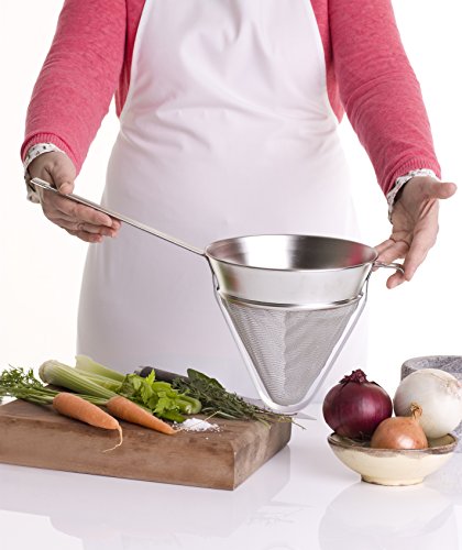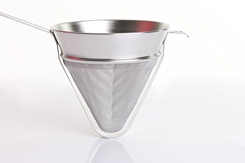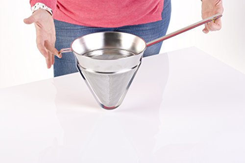 The handle length (8.5 inches / 22 cm) and hook means you can balance your fine mesh strainer over a pan, large mixing bowl or even the sink for ease of use.