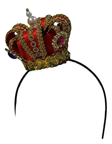 -. Binding : Apparel -. Brand : Jacobson Hat Company -. ClothingSize : One Size -. Color : Red and Gold -. Department : womens -. EAN : 0763285224676 -. Feature : The perfect accessory for your costume or next party! / Bright Vibrant Crown / Measures 3 inches at the base and 4.5 inches tall / Dress up for any occasion / A great gift -. Label : Jacobson Hats -. Manufacturer : Jacobson Hats -. Model : 26661 -. MPN : JA26661RDAJ-ST -. NumberOfItems : 1 -. PackageQuantity : 1 -. PartNumber : JA26661RDAJ-ST -. ProductGroup : Apparel -. ProductTypeName : HAT -. Publisher : Jacobson Hats -. Size : One Size -. Studio : Jacobson Hats -. Title : Women's Regal Mini Jeweled Crown Headband -. UPC : 763285224676