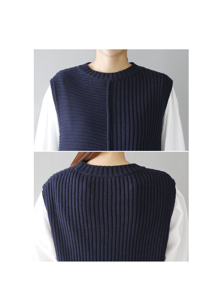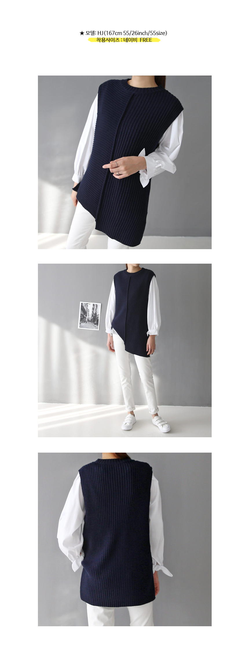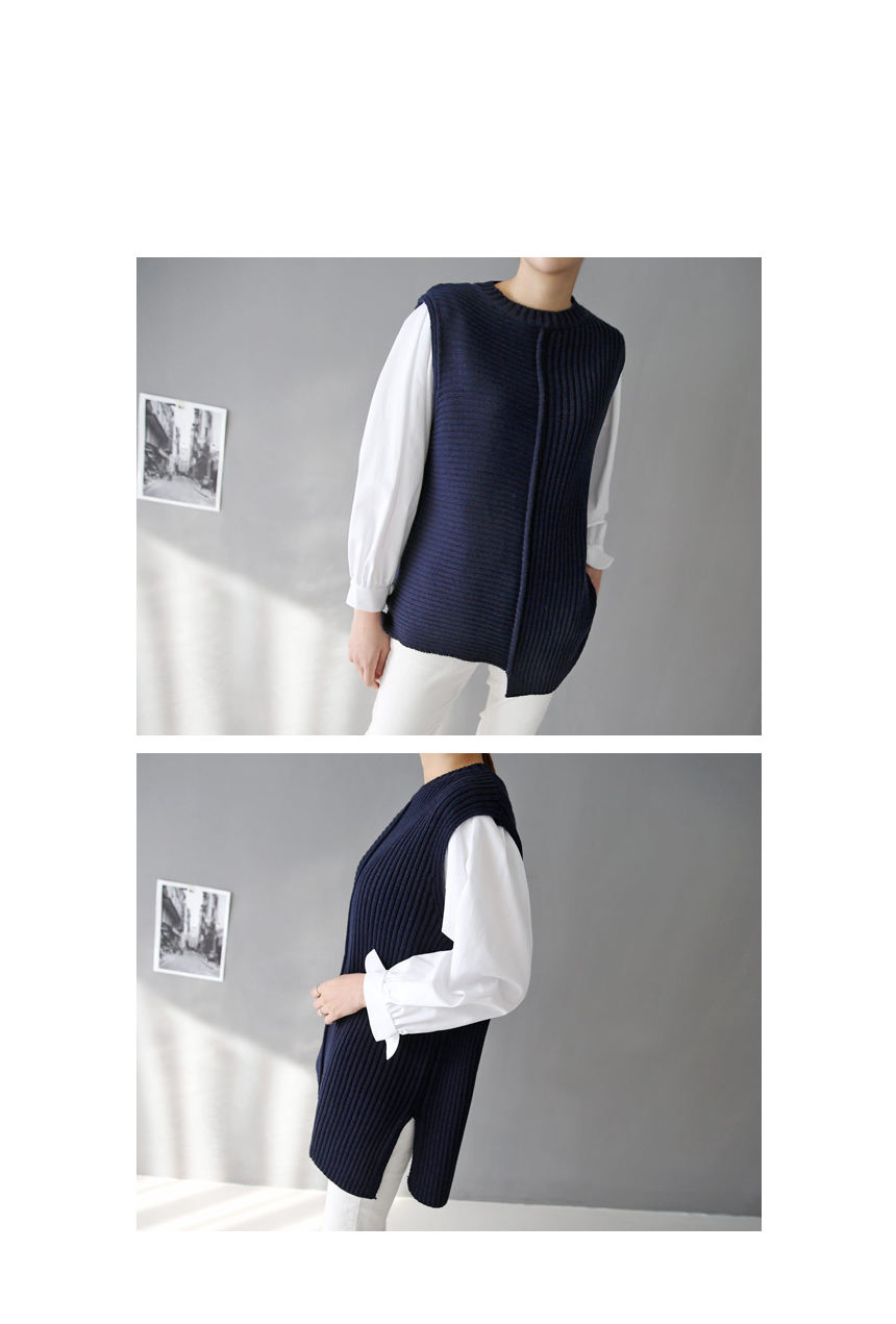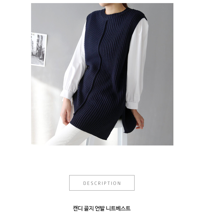 단정한 라운드넥에 어깨선 끝까지 감싸는 너비의 어깨라인과 자연스러운 내추럴 핏의 심플라인 니트 베스트예요 앞라인의 중심선 양쪽으로 길이감을 달리하고 짜임의 방향을 달리해 멋스러운 아이템으로 힙을 덮는 뒷 길이감으로 부담 없이 코디하기 좋은 니트 베스트랍니다 색상은 베이지, 머스터드, 올리브, 퍼플, 네이비 사이즈는 FREE44~77