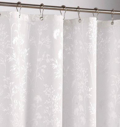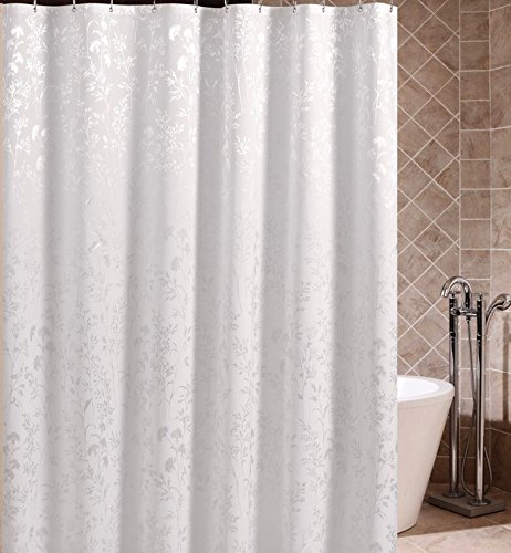 Ufriday Water-Repellent Shower Curtain Polyester Mildew-Resistant White Leaves Fabric with Rust Proof Metal Grommets, Elegant Design Bath Curtain Used Alone, Average Size, 72-inch by 72-inch