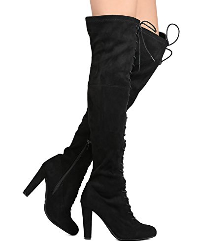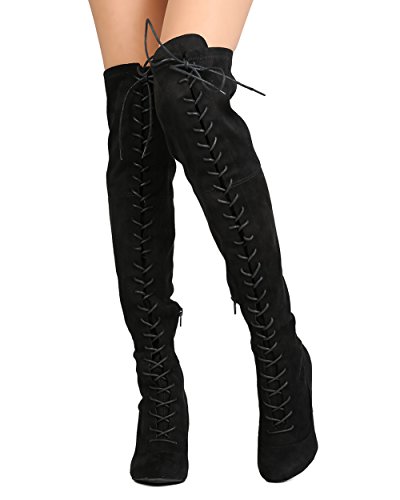 Studio : Wild Diva Publisher : Wild Diva Binding : Apparel Product Description These extremely sexy over the knee boots are made with a faux suede upper, almond toe, and stitch accents. Also made with a single sole, cupped chunky heel, and side zip for easy slip on and off. The lace up front features add a sophisticated exotic look. 0