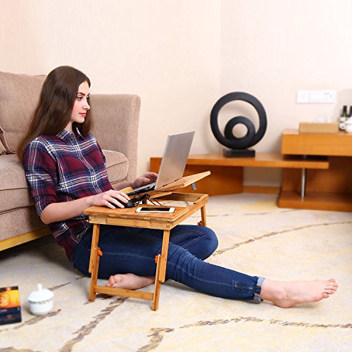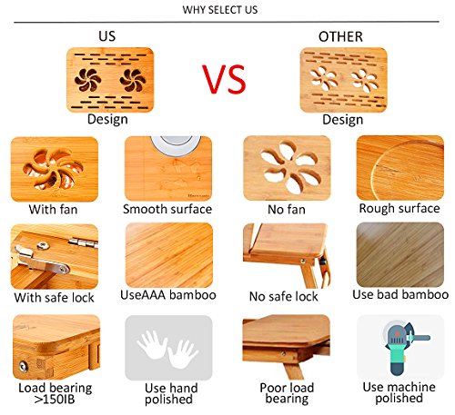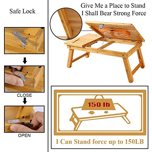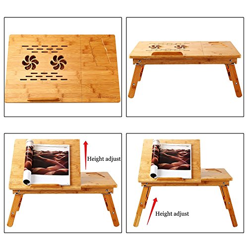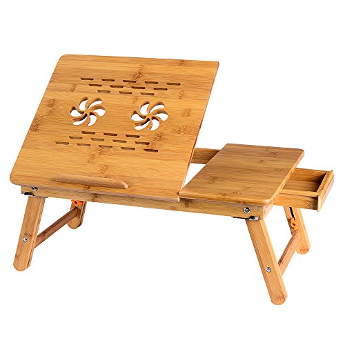 -. Title : Laptop Desk Beaucoup Laptop Table 100% Bamboo Desk Adjustable with USB Fan2 Foldable Breakfast Serving Bed Tray Drawer