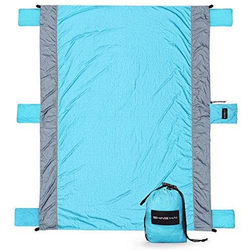SHINE HAI beach blanket is big enough for the whole family. With an unfolded size of 7.5' x 6', it is perfect for families and friends going to the park, beach, camping, sporting events, or backyard BBQs.