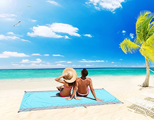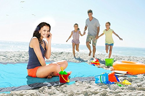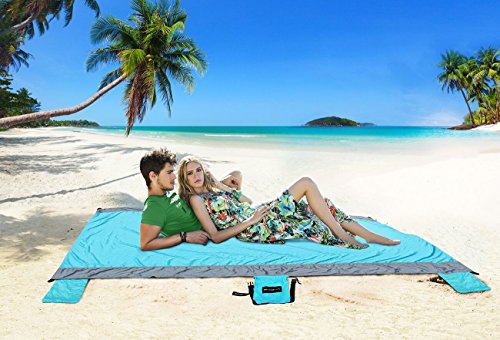 Our beach/picnic blanket is made of durable, breathable, fast drying Nylon, which is completely sand resistant and water resistant. Sand can be shaken off it easily and it dries super fast!