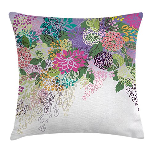 (Ambesonne)/Bedding Bath/Bedding/DIRECT FROM USA/Flower Throw Pillow Cushion Cover by Ambesonne, Hand Drawn Style Graphic Floral Print Nature In...