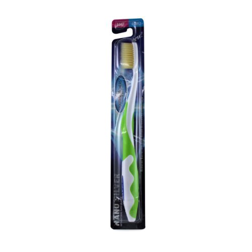 Mouth Watchers Antimicrobial Toothbrush with Flossing Bristles, Adult Green