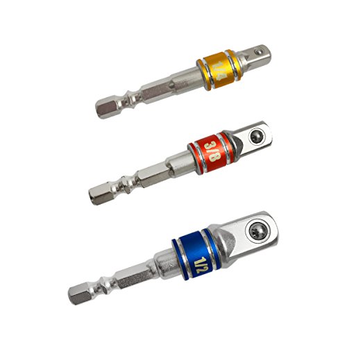 Toitan Socket Adapter/Extension Set ,3Pcs 1/4" 3/8" 1/2" Hex Square Nut Driver Power Drill Impact Socket Extension Bit Adapter Set