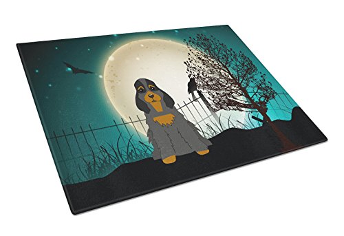 Caroline's Treasures BB2283LCB Halloween Scary Cocker Spaniel Black Tan Glass Cutting Board, Large, Multicolor