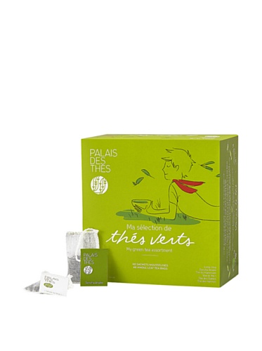-. Binding : Grocery -. Brand : Palais des Thés -. EAN : 3700256703539 -. Feature : Contains 48 cotton teabags, 8 of each of the following 6 teas: / Long Jing, Sencha Ariake, Thé du Hammam, Vive le thé!, Thé des Sables, Thé des Vahinés / Practical and fun, the box opens like a book! A description of each tea is provided on the inside. / For an added environmental touch, the teabag sachets are biodegradable. -. IsAdultProduct : 0 -. Label : Palais des Thés -. Manufacturer : Palais des Thés -. MPN : 15-1853 -. PackageQuantity : 1 -. PartNumber : 15-1853 -. ProductGroup : Grocery -. ProductTypeName : GROCERY -. Publisher : Palais des Thés -. Studio : Palais des Thés -. Title : Palais des Thés My Green Teas, Selection of 48 Tea Bags