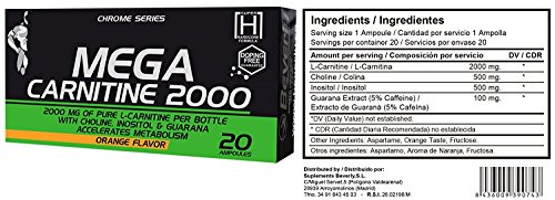 -. Binding : Health and Beauty -. Brand : Beverly Nutrition -. EAN : 5054515268900 -. Feature : MEGA L - CARNITINE 2000 is a powerful formula of L - Carnitine with caffeine to give energy to your intense workouts while reducing the adipose level. / L-Carnitine increases the organic ability to use fats as a source of energy. It also contains Colinositol, a potent ingredient that improves the metabolizing effect of fats. A blister before starting your training and you will be ready to give everything in combat. / It increases the fat burning and at the same time prevents new deposits of fats and cholesterol from being created in the body due to its metabolizing effect / An ideal formula to completely eradicate fat and cholesterol deposits from the body while exercising the body / Package: 20 ampoules -. IsAdultProduct : 0 -. Label : Beverly Nutrition -. Manufacturer : Beverly Nutrition -. MPN : Carnitine Mega 2000 -. PackageQuantity : 1 -. PartNumber : Carnitine Mega 2000 -. ProductGroup : Health and Beauty -. ProductTypeName : HEALTH_PERSONAL_CARE -. Publisher : Beverly Nutrition -. Studio : Beverly Nutrition -. Title : Beverly Nutrition Exclusive For Absat40 Mega Carnitine 2000 - Stimulate Weight Loss - Eliminates Fat Deposits & Accelerates Metabolism Weight Loss - Orange Flavor - 20 Ampoules