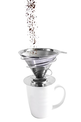 -. Brand : Oishii -. Color : Silver -. EAN : 0752584700011 -. Feature : SAVE MONEY by using a pour over reusable filter eliminates the need to buy paper filters while maximizing your coffee's flavor! / FITS PERFECTLY on top of your favorite mug, cup or thermos. Micro dripper brews directly on your favorite mug for the perfect cup of coffee on the go! / HIGH QUALITY laser cut stainless steel double filter ensures no coffee grounds end up in your cup. / EASY TO CLEAN Pour over filter is a breeze to clean! Simply rinse with warm water or use in your dishwasher and air-dry! / MAXIMIZE YOUR COFFEE'S FLAVOR by getting rid of paper filters that rob your coffee of essential oils and flavors -. Model : 5128244 -. MPN : 5128244 -. PackageQuantity : 1 -. PartNumber : 5128244 -. ProductGroup : Kitchen -. ProductTypeName : KITCHEN -. Title : Oishii Pour Over Coffee Dripper and Reusable Brewer - Stainless Steel Filter with Unique Spiral Base -. UPC : 752584700011