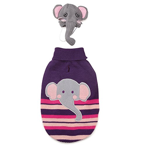 -. Title : Zack & Zoey Piggy Back Pals Sweater and Hat Set for Dogs, 8" XX-Small, Elephant