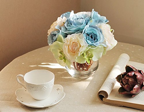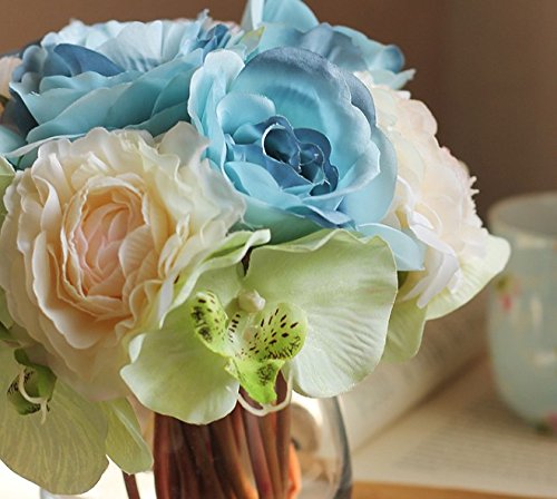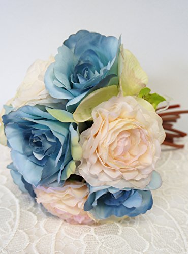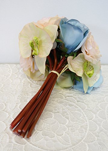 - Title : Sweet Home Deco 10" Rose Orchid Ranunculus Mixed Silk Wedding Bouquet Flower (13 Flower Heads), No Pot Included (Blue)