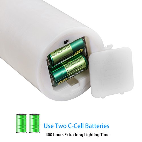 SUPER LONG BATTERY LIFE: The candles are powered by 2 x C Cell battery, batteries are expected to last for about 400 hours (high-grade battery required). C cells Battery have approximately 4X capacity of AAA batteries, and about 2X of AA batteries.