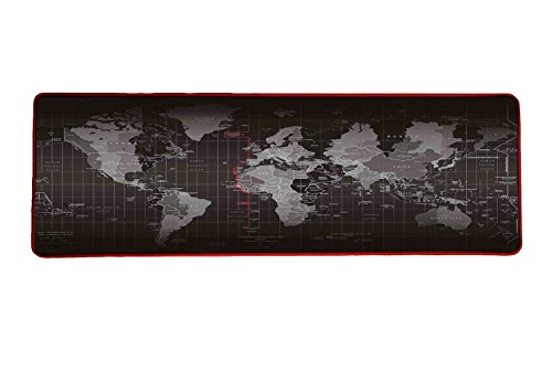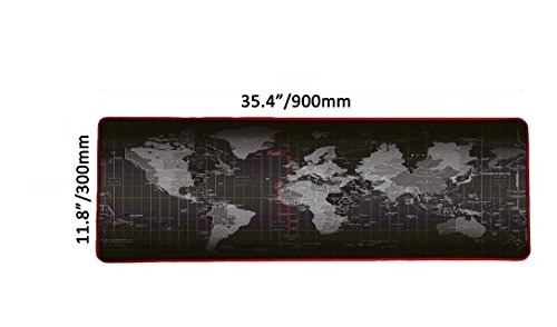 Woodlandu Extended Gaming Mouse Pad Printed with World Map Stitched Edges Speed Silky Smooth Surface Non-Slip Rubber Base Mats 300x900x3mm/11.8x35.4x0.12inch Red Edges